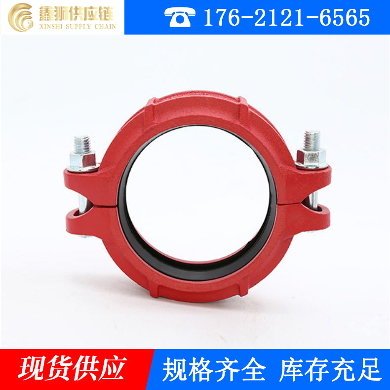 起连接密封作用的沟槽连接管件主要有三部分组成:密封橡胶圈、卡箍和锁紧螺栓。位于内层的橡胶密封圈置于被连接管道的外侧,并与预先滚制的沟槽相吻合,再在橡胶圈的外部扣上卡箍,然后用二颗螺栓紧固即可。由于其橡胶密封圈和卡箍采用特别的可密封的结构设计,使得沟槽连接件具有良好的密封性,并且随管内流体压力的增高,其密封性相应增强。